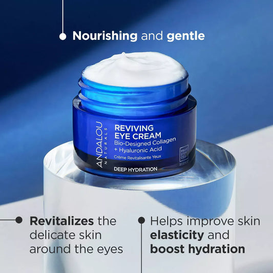 Revitalize Your Eyes with Andalou Naturals Deep Hydration Reviving Eye Cream - 0.45 Oz of Vegan, Aluminum-Free Luxury Infused with Hyaluronic Acid